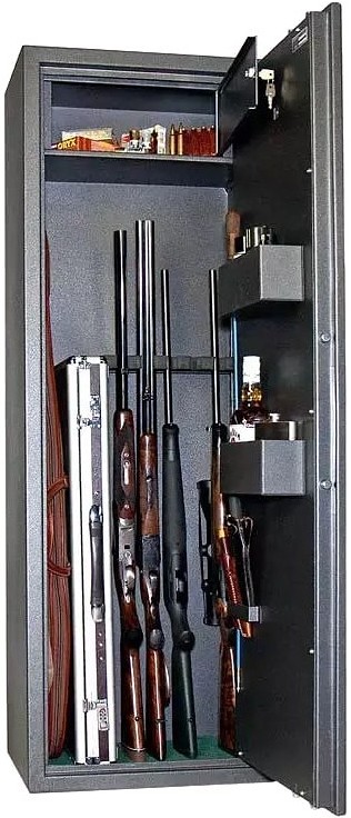 Отдельное внимание производитель уделяет комфорту владельца: внутри предусмотрены ложементы под стволы, запираемые отделения для патронов и документов, регулируемые полки и карманы, а в ряде моделей – светодиодная подсветка для удобства доступа к содержимому. По типу замков доступны варианты с двумя ключевыми, электронным кодовым, механическим кодовым или комбинированным управлением.
